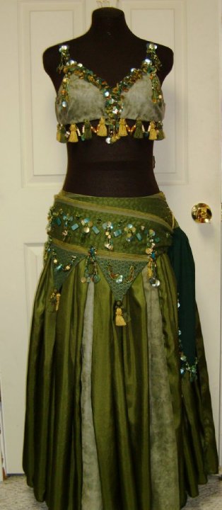 Tribal belly dance costume, made using only wood and glass beads and natural shells.