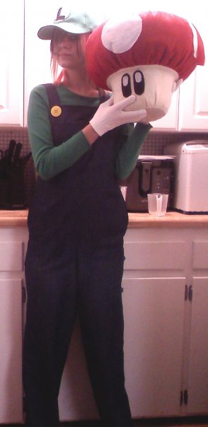 Custom fit costume, made to be worn to school for Halloween. It included the mushroom trick or treat bag.