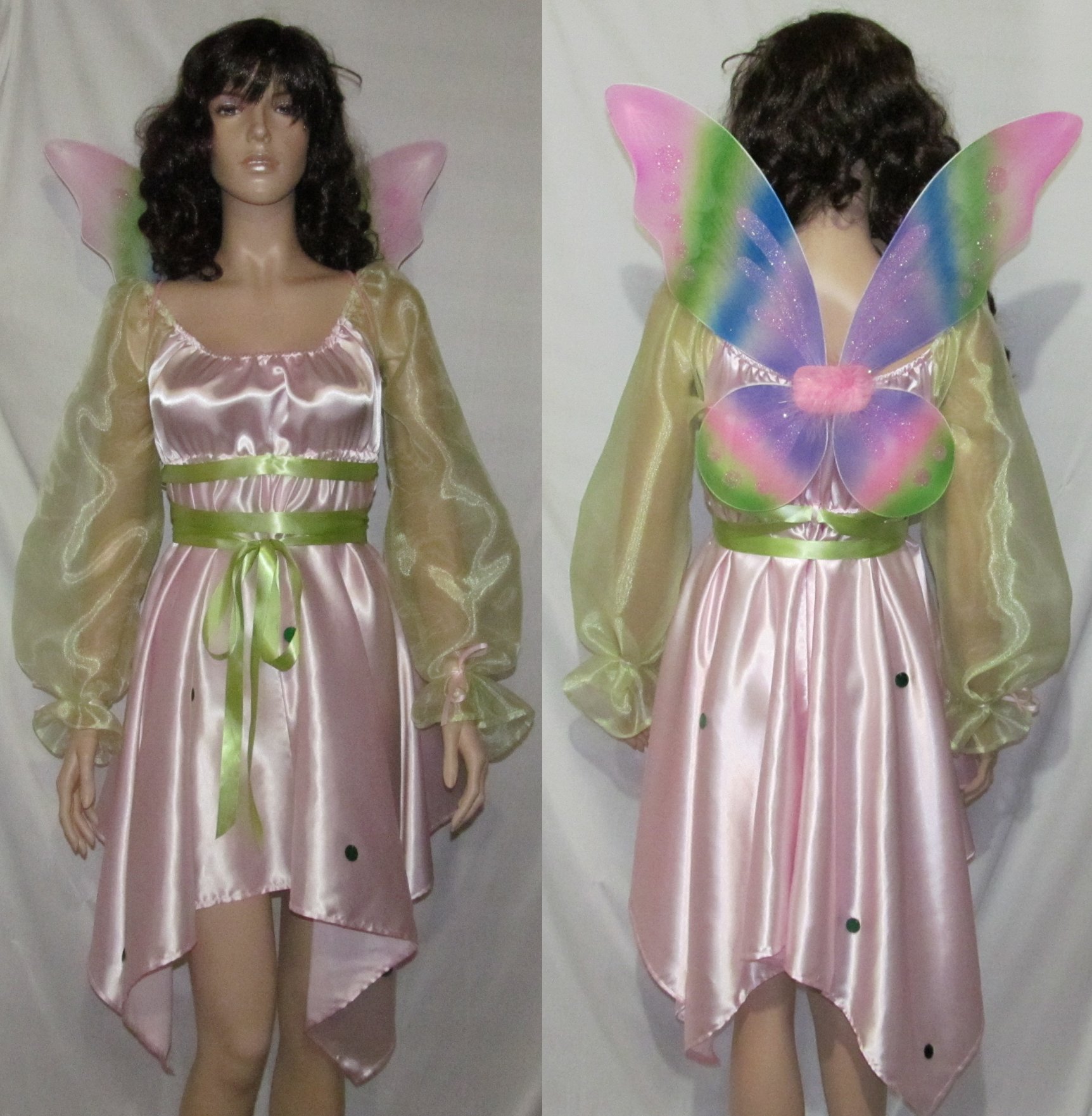 Custom ordered Tinkerbell, she wanted one that was more conservative so she could wear it to church events. The dress has a two-tiered skirt in contrasting colors and a netting underskirt. The headband lights up and can be turned on and off as needed.